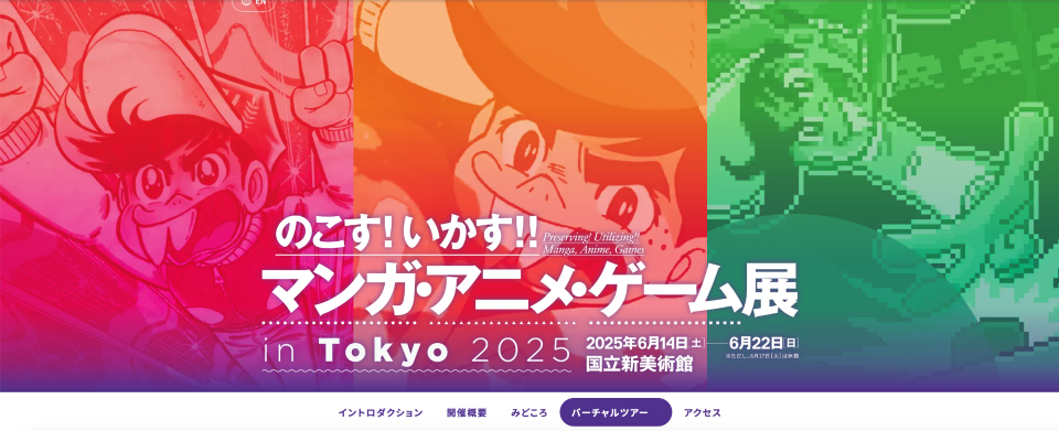 本年6月に国立新美術館で開催された「のこす!いかす!! マンガ・アニメ・ゲーム展」(キービジュアルに『ゲームセンターあらし』が使用されました)の展示をオンラインで見られるバーチャルツアーが公開されました。展示に行った方も行けなかった方も、お試しになってみてください。